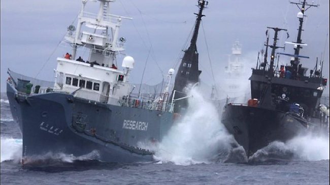 Sea Shepherd fleet clash with Japanese vessels. (Photo: Adelaide Now)