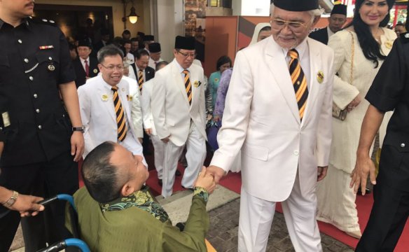 Taib Mahmud (second from right) greets supporters with his second wife, Ragad Taib (R) in Sarawak, Malaysia. Source: Twitter